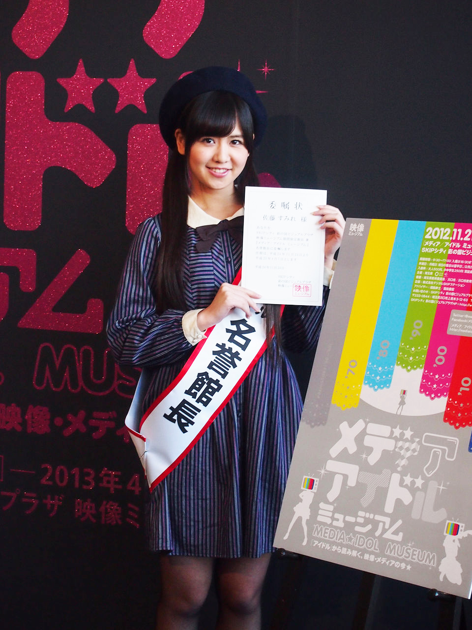 Sumire Sato, quien iluminó la ceremonia con su característica sonrisa, fué nombrada además «directora honoraria» y curadora de la exposición, la cual permanecerá abierta al público en Visual Plaza Skip City de Saitama desde éste fin de semana hasta el mes de abril de 2013.