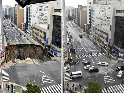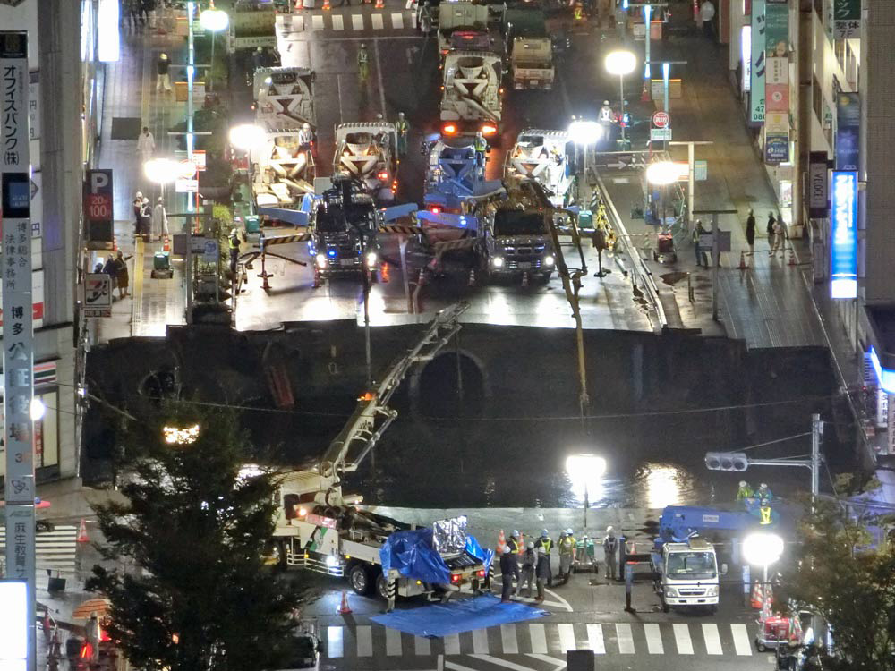 El martes 15 de noviembre la ciudad de Hakata reabrió a la circulación vehicular una concurrida calle que colapsó abriéndose un enorme socavón, luego de una semana de intensos esfuerzos por parte del personal que trabajó durante las 24 horas del día.