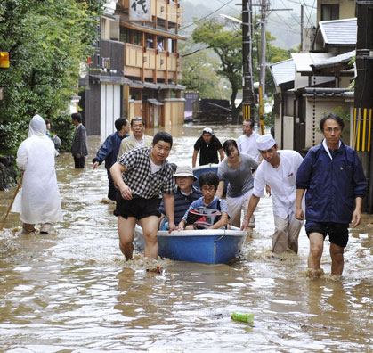 Cerca de 150 miembros de las Fuerzas de Autodefensa fueron enviados a Kyoto a apilar sacos de arena en la parte del río Katsuragawa, que se desbordó e inundó algunas casas, dijo el gobierno de la ciudad de Kyoto. Previamente, el gobierno de la ciudad emitió órdenes de evacuación para 268,445 personas de 109,964 hogares cerca del río y del río Katsuragawa Ujigawa. También emitió un aviso de evacuación para 33,993 personas de 15,395 hogares.