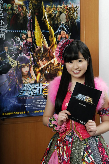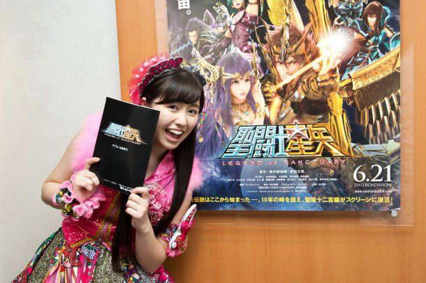 Se ha anunciado que Ayaka Sasaki, integrante del grupo idol «Momoiro Clover Z», conocida por sus seguidores como «A-rin», fue elegida para prestar su voz al personaje femenino principal de la nueva película «Saint Seiya Legend of Sanctuary».