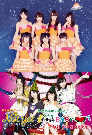 Se acaba de confirmar que el nuevo sencillo de «Watarirouka Hashiritai 7» titulado “Shounen yo Uso wo Tsuke!” , que hace tiempo se informó que sería lanzado el 30 de Mayo, tendrá como competencia al nuevo sencillo del cuarteto «Not Yet», titulado «Suika Baby», el cual apenas se anunció su lanzamiento para la misma fecha.