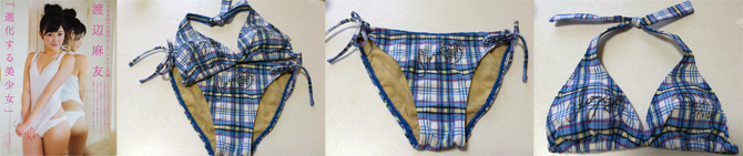 El jueves 20 de junio causó revuelo entre los wotas nipones la noticia que en la red se estaban subastando dos prendas de vestir, supuestamente pertenecientes a Mayu Watanabe (19) y a Haruka Shimzaki (19) de AKB48, y que se estaban ofreciendo al mejor postor a través del sitio de subastas de Yahoo! Japan, donde efectivamente, se exhibián las fotografías de dos bikinis, presuntamente autografiados por las idols.