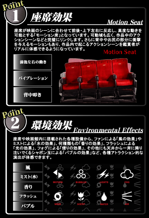 La compañía comenta: «Con el sistema 4DX, podemos estimular los cinco sentidos, permitiendo que los aficionados al cine tengan una conexión personal con la película. Creemos que esta será una nueva forma de disfrutar las películas».