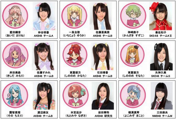 Tras la audición pública realizada a finales del año pasado, donde se eligieron a las nueve «Seiyuus» que le prestarán sus voces a los personajes del ánime «AKB0048», a estrenarse en la primavera de este año, finalmente se asignaron los personajes que interpretarán Haruka Ishida, Karen Iwata , Amina Sato , Sumire Sato , Sayaka Nagaya y Mayu Watanabe de AKB48, Hata Sawako y Kumi Yagami de SKE48 , y Mao Mita de NMB48.
