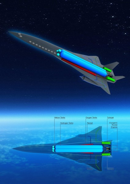 Una vez alcanzados los 5 kilómetros de altitud, tres motores propulsados por una mezcla de hidrógeno y oxígeno, tomarán el relevo, ayudados por un tercer reactor concebido a partir de la tecnología utilizada en los cohetes Ariane. El avión logrará entonces una velocidad 2.5 veces superior a la del sonido, más de la que lograba el Concorde.