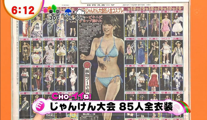 Para algunos medios y wotas nipones, el que Haruka Shimazaki (18) haya resultado ganadora en el ya tradicional torneo de Piedra-papel-tijeras, que se organiza en el mes de septiembre para que la «suerte» elija al equipo Senbatsu que participará en el sencillo que AKB48 lanza a finales de cada año, no fue la gran noticia que ocupó los titulares de sus correspondientes coberturas.