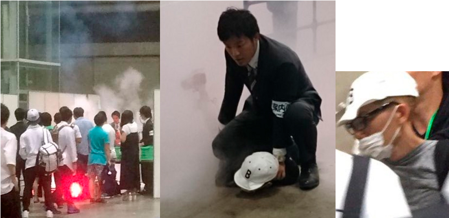 «Yabasugi, abunai, abunai» «estuvo peligroso», fueron las declaraciones de los testigos quienes se percataron que un individuo en la fila de nombre Ryohei Abe súbitamente encendió una bengala de color rojo y la lanzó al piso con la finalidad de crear humo blanco y caos, por lo que fué sometido inmediatamente por personal de seguridad del evento.