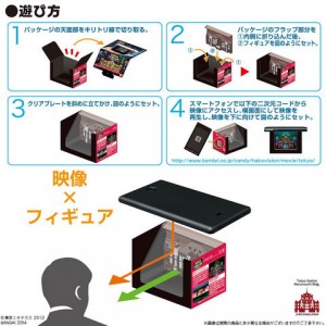 La compañía japonesa de juguetes Bandai lanzará al mercado un kit de proyección de imagenes 3D, que incluye una aplicación para teléfonos inteligentes llamado «Hako Vision».