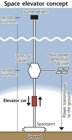 Aunque el concepto de un ascensor ya se había descrito en las novelas de ciencia ficción y la NASA ha planteado la idea desde hace tiempo, la compañía nipona dijo que la construcción será realmente posible después del descubrimiento en el año de 1991 de los nanotubos de carbono, un material ligero 20 veces más fuerte que el acero, dijo la compañía.