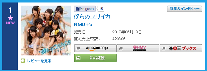 El séptimo sencillo de NMB48 , «Bokura no Eureka» , se logró colocar en la cima del Oricon al contabilizar 420,906 copias vendidas el día de su lanzamiento, ocurrido el miércoles 19 de junio.