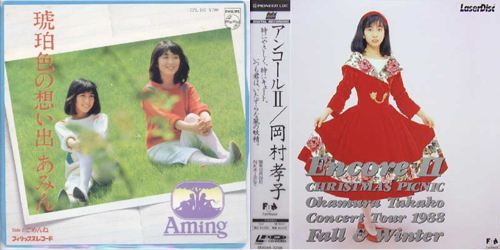 Takako formó parte del legendario dúo idol «Amin» (Aming) junto a la idol Haruko Kato, las cuales en julio de 1982 alcanzaron el Top 1 de Oricon con su éxito «Matsu wa», un tema suave con influencias folk compuesto por la propia Takako Okamura y que es uno de los mas importantes temas en la historia del jmusic.