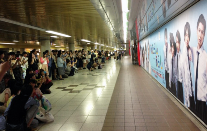 El pasado viernes 12 de julio en la estación Shibuya del metro de Tokyo se instaló un cartél promocional donde se anuncia la participación de un popular grupo idol masculino de la agencia "Jhonny´s Jimusho" en un programa especial de FujiTV que se transmitirá la siguiente semana.