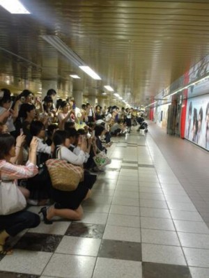 Algunos usuarios del medio de transporte tomaron fotografías de lo que ocurria al interior de los andenes del metro y las publicaron por la red, donde comenzaron a surgir comentarios a favor y en contra de lo que algunos consideraron una "excesiva" muestra de aprecio por los idols masculinos, sobre todo al refrerise a la imagen en la que se ve lo que parecen ser chicas estudiantes de secundaria arrodilladas en el suelo y con su rostro pegado a la altura de la entrepierna de los artistas.