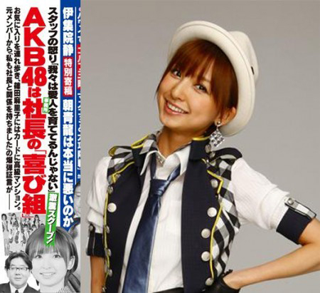 Con su popularidad prácticamente intacta, se quedará como un episodio secreto la supuesta relación "inapropiada" que ella tuvo con Yasushi Kubota, uno de los tres fundadores de AKB48, versión difundida por el tabloide Shukan Bunshun en un artículo publicado en febrero del año 2010, hecho por el cual la compañía AKS demando por 150 millones de yenes a la editorial Bungeishunju por dañar la reputación de Shinoda y del empresario.