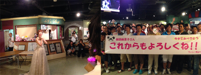 Al compás de las notas de "Sakura Hanabiratachi" y "Ue Kara Mariko", Shinoda se despidio entre lágrimas de sus más fieles wotas, haciendo un recuento de sus años dentro del grupo, mientras que "Takamina leyó una emotiva carta escrita por la madre de Mariko.