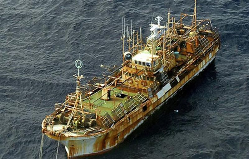 Hunden barco pesquero japonés que se encontraba a la deriva por el tsunami