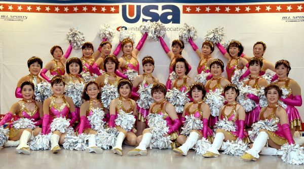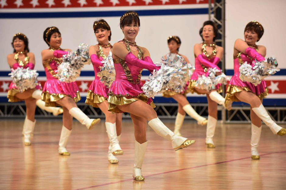 La señora Fumie Takino, fundadora del equipo «Pompom Japan» hace 20 años, encabeza el grupo de más de 20 mujeres mayores de 55 años, cuyo promedio de edad de las integrantes es de 70 años.