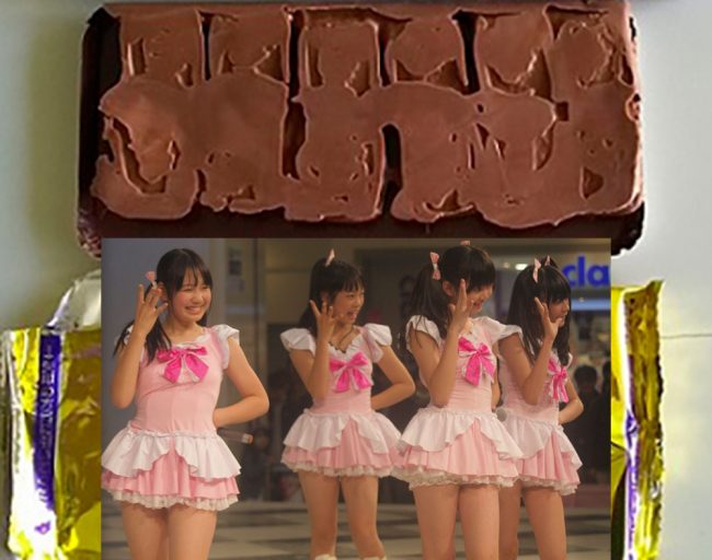 Un usuario japonés descubrió en una barra de chocolate la aparición milagrosa de un grupo idol. No había ninguna duda, la única explicación posible de éste inusual fenómeno era la intervención sobrenatural de alguna deidad idol, así lo expresaron usuarios de twitter al descubrir la milagrosa aparición en una barra de chocolate de la marca Alfort.