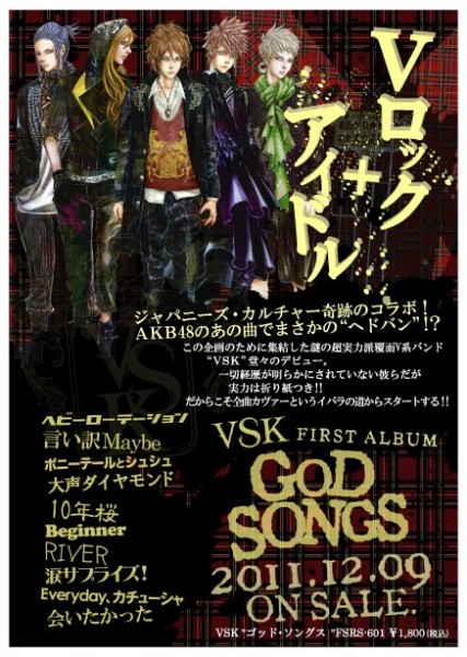 Ha despertado un gran interés en el medio de la música el próximo debút de un grupo llamado “Masked Visual-kei band” (VSK ) quienes lanzarán su primer álbum nombrado «GOD SONGS» (Canciones de Dios) para el 9 de Diciembre.