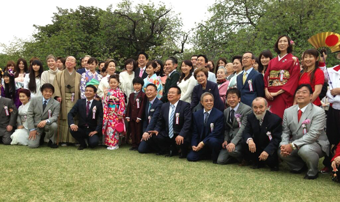 El grupo idol, «Momoiro Clover Z», fueron parte de las celebridades y personajes de la política que acompañaron al primer minsitro de Japón, Shinzo Abe, durante la ceremonia oficial para ver los cerezos en flor, «Sakura wo Miru Kai», la tarde del sábado 20 de abril en el parque imperial Shinjuku Gyoen, en Tokyo.