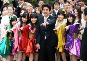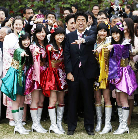 La imagen de Abe junto a Momoclo pone de relieve las declaraciones que hizo el viernes 19 de abril, donde dijo que las mujeres son la clave para la recuperación económica de Japón.