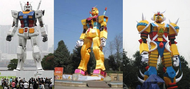 Vale la pena recordar que a finales del 2010, un parque chino generó polémica al poner en exhibición la estatua de un robot muy similar al Gundam japonés. Luego de la inmediata protesta del propietario nipón de los derechos del personaje, los «originales» chinos tuvieron que modificar el diseño de su robot.