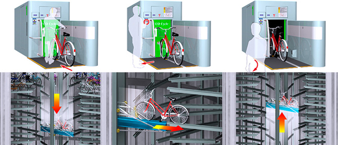 La compañía nipona GIKEN Seisakusho Co. Ltd. ha desarrollado un novedoso sistema de estacionamiento para bicicletas pensado para las grandes ciudades, donde los aspectos de sustentabilidad, ecología, factor de seguridad y utilización de espacios mínimos, han sido pensados cuidadosamente para su sistema denominado «ECo Cycle»- Estacionamiento subterráneo anti-sísmico para bicicletas-.
