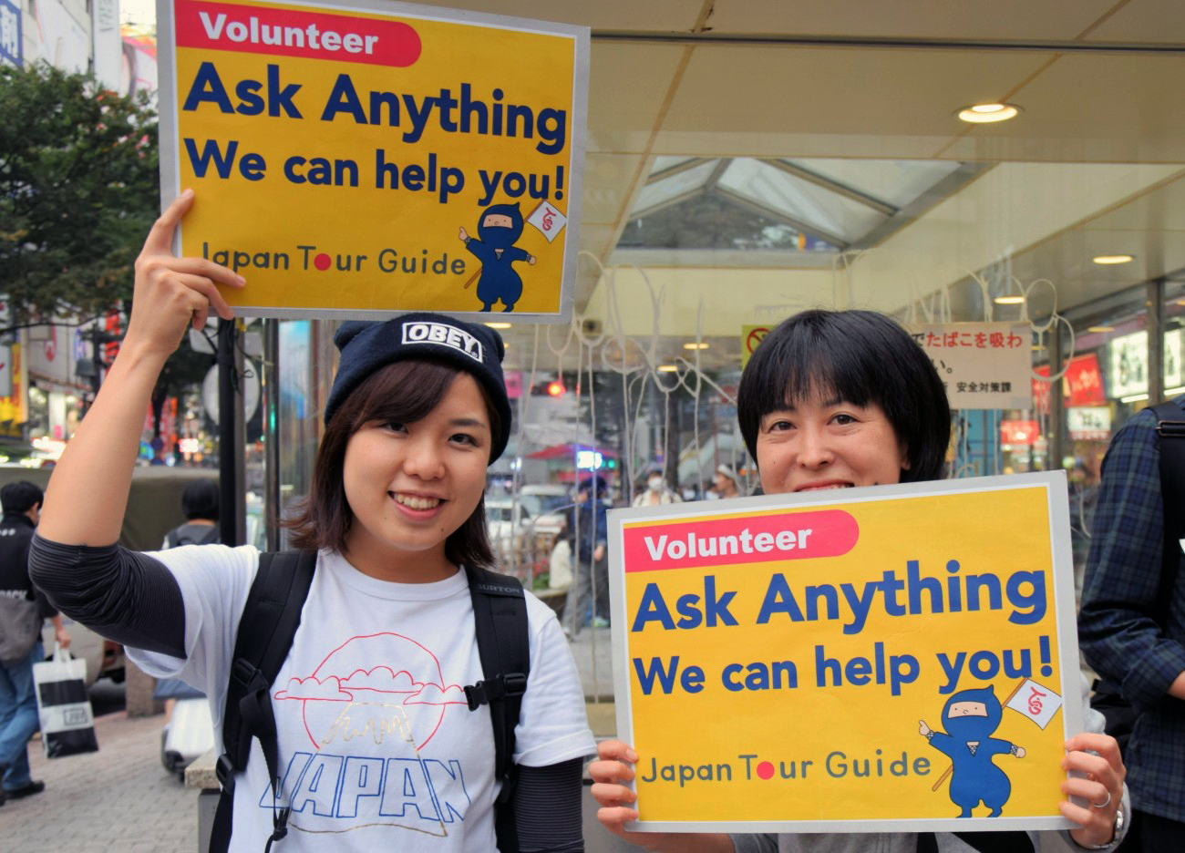 Los grupos de ayuda turística operan desde las 15:00 horas y hasta las 18:00 horas los fines de semana en Shibuya (sujeto a cambio una vez por semana), reuniéndose justo al lado del mundialmente famoso cruce peatonal, localizado al frente de la estación de tren.