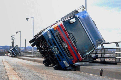 Un gran número de camiones de carga que fueron derribados por los vientos, crearon bloqueos de tráfico en la prefectura de Toyama.