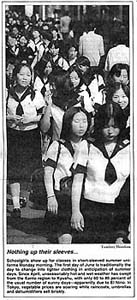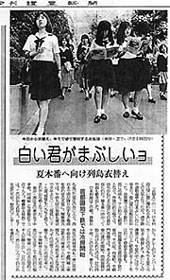 La llegada del verano es un acontecimiento importante. El traje blanco enmarca este evento importante y celebra con estas jovenes el futuro de esperanza y luz que deposita la sociedad en sus generaciones futuras. Solo hay que esperar a ver si el «sailor fuku» sigue siendo parte de ese futuro, o si finalmente sucumbe ante los otros estilos de uniforme escolar, ya adoptados por las escuelas privadas.