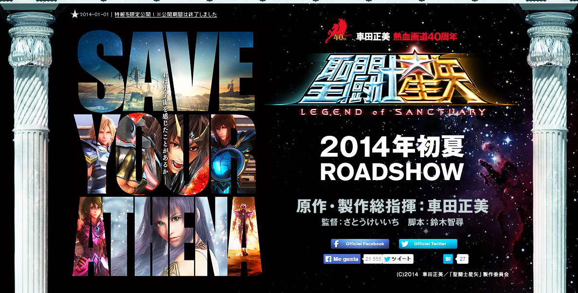 «En 2014, los caballeros del zodiaco finalmente regresan a los cines después de 10 años con el director de «Tiger & Bunny» y «Black Butler», Keiichi Sato, reviviendo los episodios más populares del santuario en la pantalla grande!».