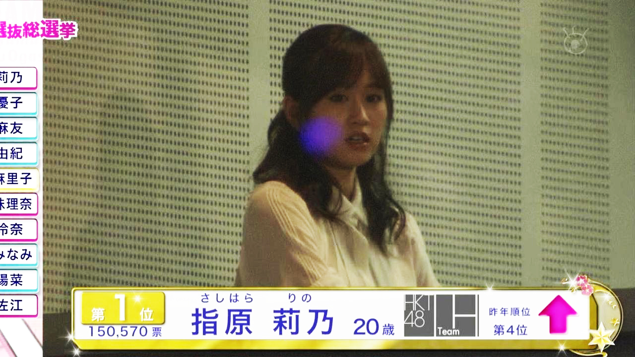 Aunque la mayoría de los sondeos previos al cierre de la elección le aseguraban la victoria nuevamente a Yuko Oshima (24), el resultado final del Sousenkyo se mantuvo de la misma forma cuando el pasado 22 de mayo se informaron los resultados preliminares del primer día de votación, donde Rino Sashihara (20) de HKT48 aventajaba por casi el doble de votos a Mayu Watanabe.