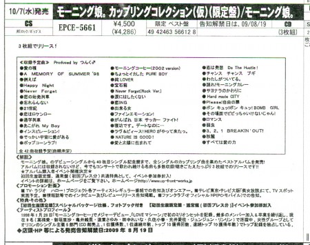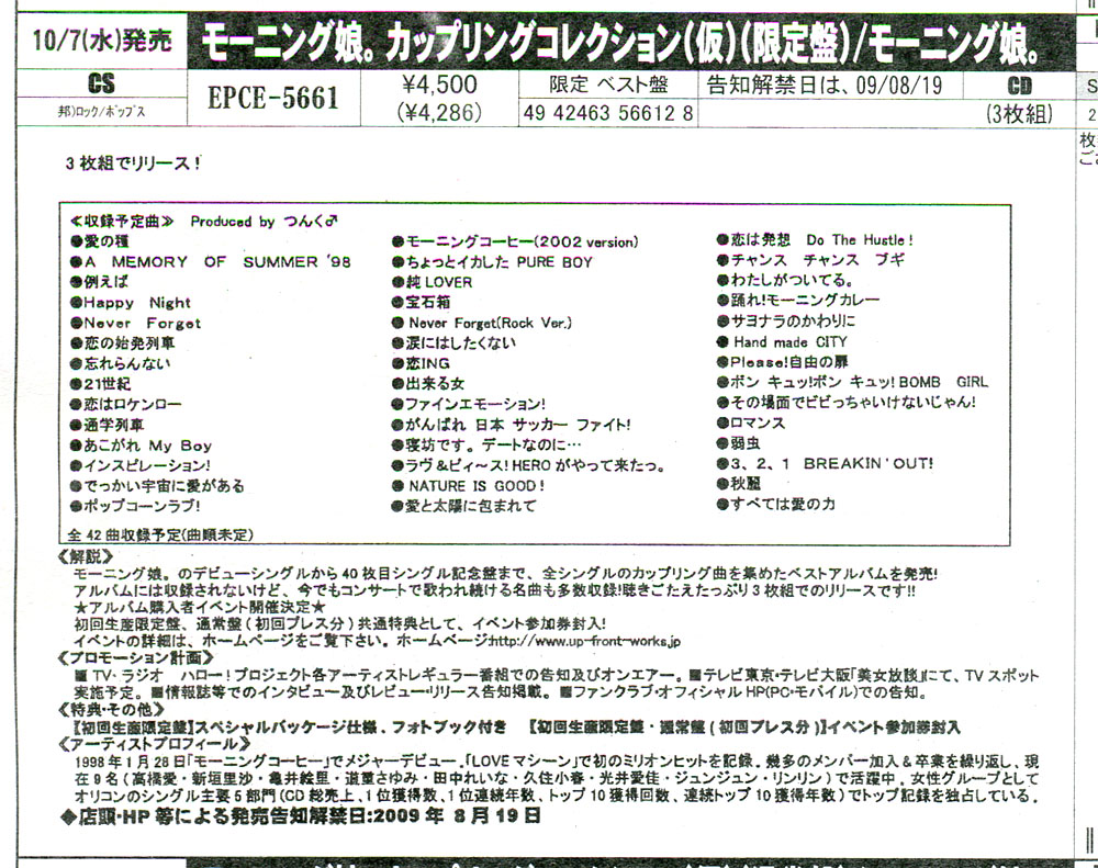 Este es un adelanto de los tracks por cada cd del album especial de morning musume