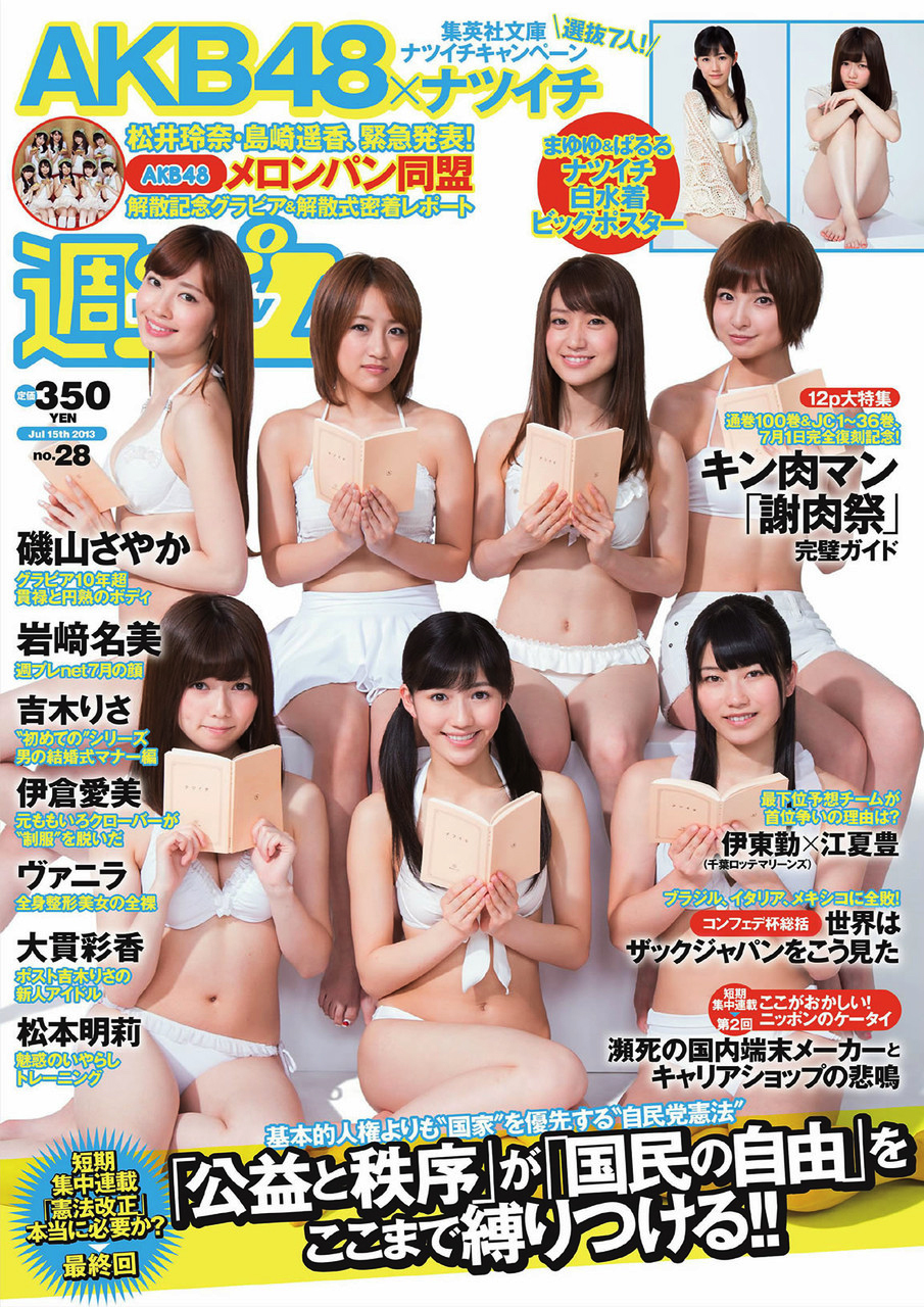 La revista Weekly Playboy reveló algunas imagenes del club de lectura veraniego de AKB48 incluidas en su número de la primera quincena de julio (incluyendo las del encabezado de esta nota y donde se anuncia el próximo número especial de bikinis sorpresa con las 16 chicas senbatsu).Imagenes en alta resolución, enjoy!
