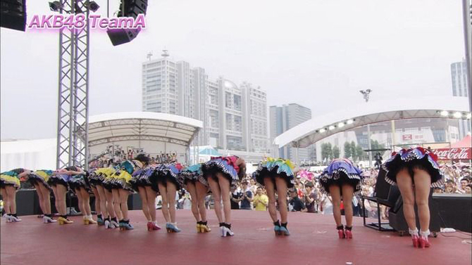 Cámaras "traviesas" durante la transmisión de Fuji TV del festival de verano de Odaiba con la participación del equipo A de AKB48 el martes 27 de agosto.