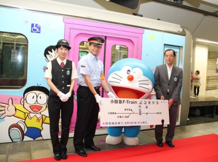 Los seguidores del popular anime «Doraemon» (El Gato Cósmico), podrán utilizar un tren especial llamado «Odakyu F-Train» decorado con lo personajes creados por los mangakas Fujiko F. Fujio y el cual comenzó a dar servicio el miércoles 3 de Agosto recorriendo la linea Odakyu.