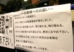 Durante el concierto del dia 27 en el tercer nivel del Yokohama Arena, un wota de 35 años perdió el equilibrio y cayó al precipicio, una vez que brincaba para apoyar a las idols en una zona que es considerada como de «permanecer sentado». Tras ser conducido al hospital con fuertes lesiones, en el concierto del domingo se cerró el acceso al público a esa sección, mejorando la vigilancia y controlando el comportamiento de los asistentes para que no se presentaran otros percances como el ocurrido la noche del sábado.