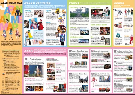 El mapa en su parte frontal hace una recopilación de sitios donde se llevan a cabo convenciones de ánime, cosplay, tiendas de regalos y enumera los lugares emblemáticos de la cultura Otaku en varias ciudades como Akihabara, Nakano Broadway, Ikebukuro Otome Road en Tokyo, Nagoya Osudenkigaki en Aichi, etc.