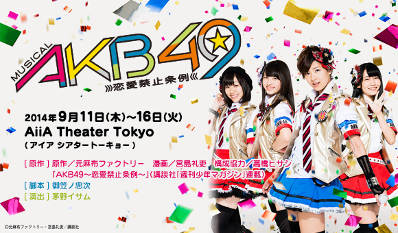 El martes 12 de agosto se reveló el elenco y la fecha de estreno del musical “AKB49~Renai Kinshi Jourei”, basado en un manga especial publicado en agosto del año 2010.