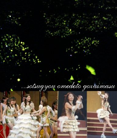 El yokohama arena completamente cubierto de luces amarillas enmarcó este importante acontecimiento. Las integrantes del Hello! project incluyendo la líder Yuko Nakazawa no dejaron de expresar entre lágrimas el apoyo a su compañera y amiga. A partir de hoy Kaorin inicia su carrera en solitario y Mari Yaguchi se convierte en la nueva líder del grupo. Sotsugyou omedeto, Iida Kaori. «Yume no naka made anata ga suki yo».